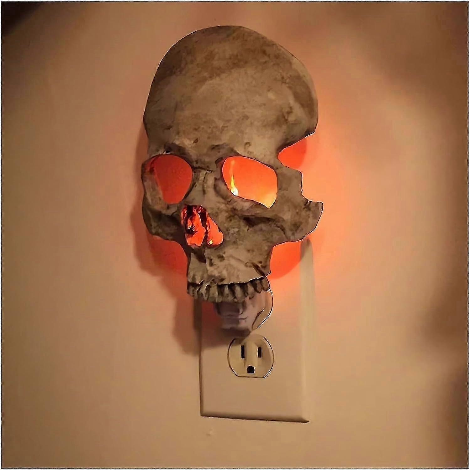 Skull Night Light, Halloween Gothic Handmade Skull Night Lamp, Skull Lamp Plug-Into Wall with Flame Atmosphere, Gothic Light Fixture for Halloween Dec
