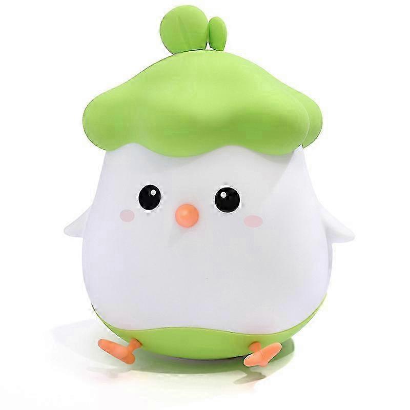 describe:1. Children's room night light: Silicone night light emits a soft, quiet light under a soft, environmentally friendly silicone cover, which will not disturb your baby or other family members at night. Highly recommended as a nursery night light and also a practical night light for moms to use during nighttime diaper changes and breastfeeding.2. Rechargeable: No remote control required. Place a children's bedroom lamp next to the bed and children can easily control the light color with a click. Handheld and portable design, kids can take the night light to the bathroom in the middle of the night and they can see clearly without turning on the overhead light to wake everyone up.3. Long-lasting lighting: The children's night light has a built-in 1200Ma rechargeable battery, with a high-brightness lighting time of 5H and a low-brightness lighting time of up to 200H. You can use it with confidence.4. Safety: LED light source, warm white lighting, no harm to eyes. Environmentally friendly silicone, soft texture. The base is made of high-grade ABS, toy-grade material, odorless and non-toxic, and children can touch it at will.5. Perfect gift choice: This vegetable chick night light is a great gift for your friends, children or even yourself. A perfect gift for birthdays, Children's Day, Easter, Christmas, New Year, etc., its charm and functionality will delight the recipient. Surprise your loved ones with this special gift that is both cute and practical. Make your special day an unforgettable one. This vegetable chick night light is the perfect gift.Specification:Product type: night lightProduct material: ABS+PC+silica gelProduct size: 110.44 * 102.49 * 124.9mm (4.35*4.04*4.92 inches)Battery capacity: 1200mAH lithium batteryNotice:Due to different monitors and due to lighting effects, the actual color of the item may vary slightly from the color shown in the photos. Thank you!Please allow 1-2cm measurement error due to manual measurement.Package Contents:1 x lamp1 x USB cable