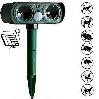 Product description1[Infrared principle]: Animal repeller uses infrared detection principle, to send out ultrasonic probe at the same time to drive away small animalsSolar animal repeller can help you stay away from pesky stray dogs, cats and other small animals harassment to protect your property and your gardenwoodpecker deterrent2[Portable design]: Since the animal repeller is a portable design, can be installed in your home, garden, courtyard or anywhere, this product is low voltage power supply with battery, this product can drive animals without warranty of any chemicals, it is only issued to 25kHz ultrasonic frequency drove them awaythere will not be any harm to the human body3[ Motion Activated]: Sensor sensitively detects moving objects while triggering 120 dB alarm sounds, ultrasound and flash to prevent intrusion of bad guys and dangerous animals, protecting your personal and property safety4[Movement detector]: This is a non-stop transmission infrared sensor output signal when the sensor detect animals get into the detection range, it will automatically send out acoustic frequency to drive animals and the LED lights up followed5[Portable & Easy use]: You can simply push the animal repeller into the groundPerfect for yard, patio, driveways, garage, attics, porches, boats, gardens, farms, ponds, etcEven it is portable to take into your camping to be away from stray dogs, stray cats and pests harassment
