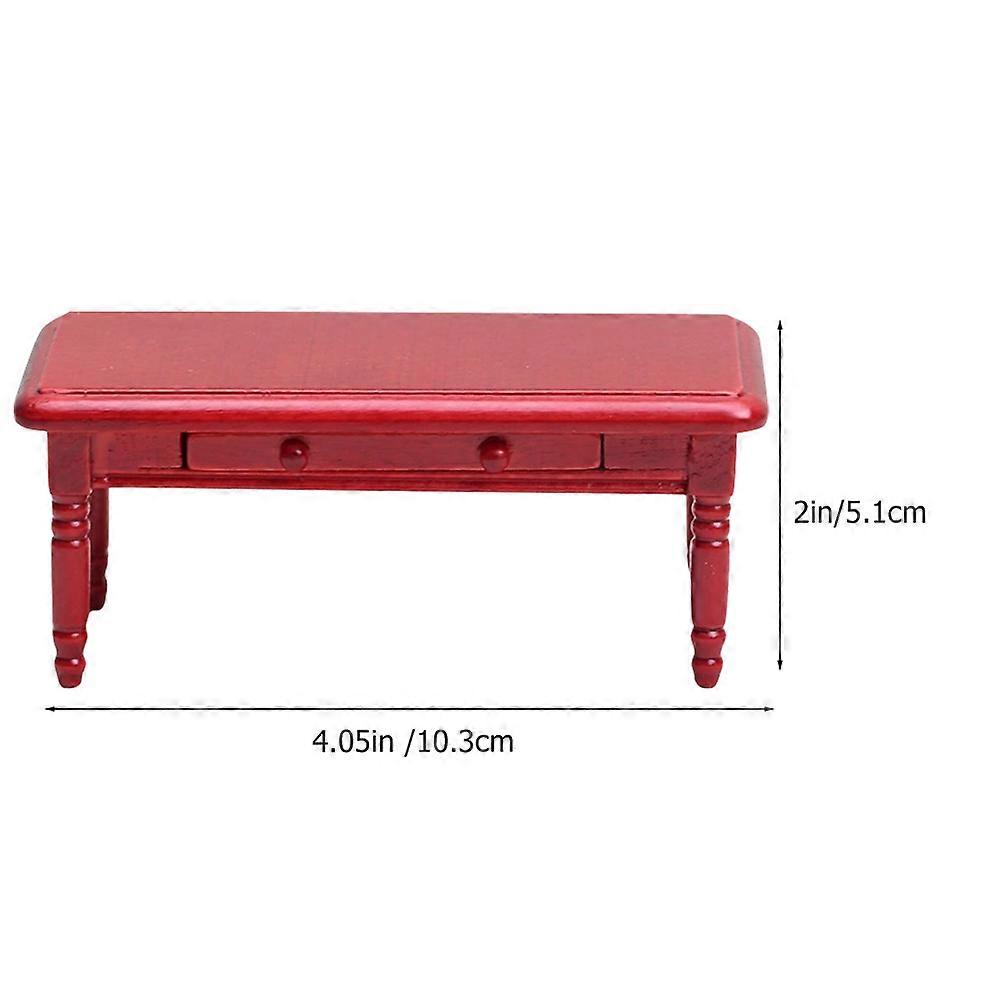 Mini Coffee Table Miniature Wood Table Home Decoration Red Wood Material for Diy Micro Landscape 1Set