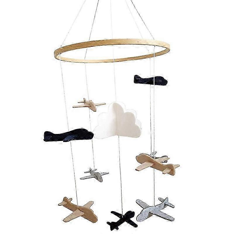 Crib Mobile Airplanes & Cloud Nursery Decoration | Grey and White, Navy Blue, Tan | Baby Crib Mobil