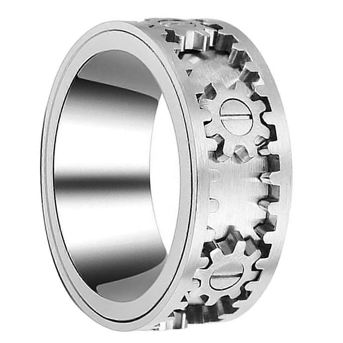 Double Layer Fidget Spinner Gemstone Gear Men Anxiety Relief Rings Women Jewelry Punk Rock Hip Hop Gift No.8