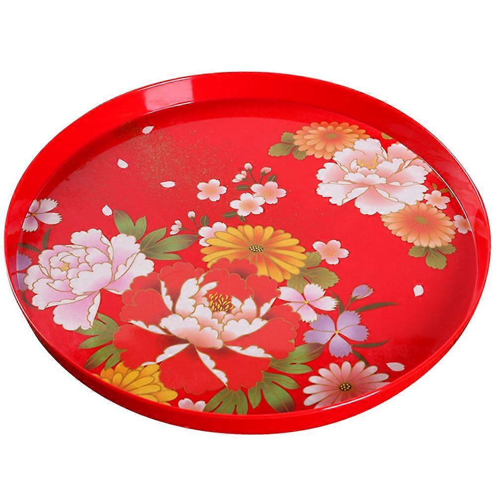 Red Round Tea Tray Storage Dish for Weddings Parties Showers Birthdays Restaurant Displays Hotel Displays 1Pcs