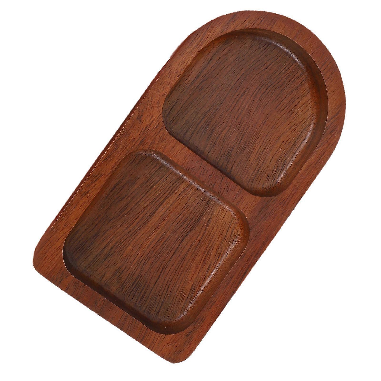 Wood Platter with Two Compartments Small Wood Seasoning Plate for Snacks Decorative Wood Plate for Serving Food and Dessert
