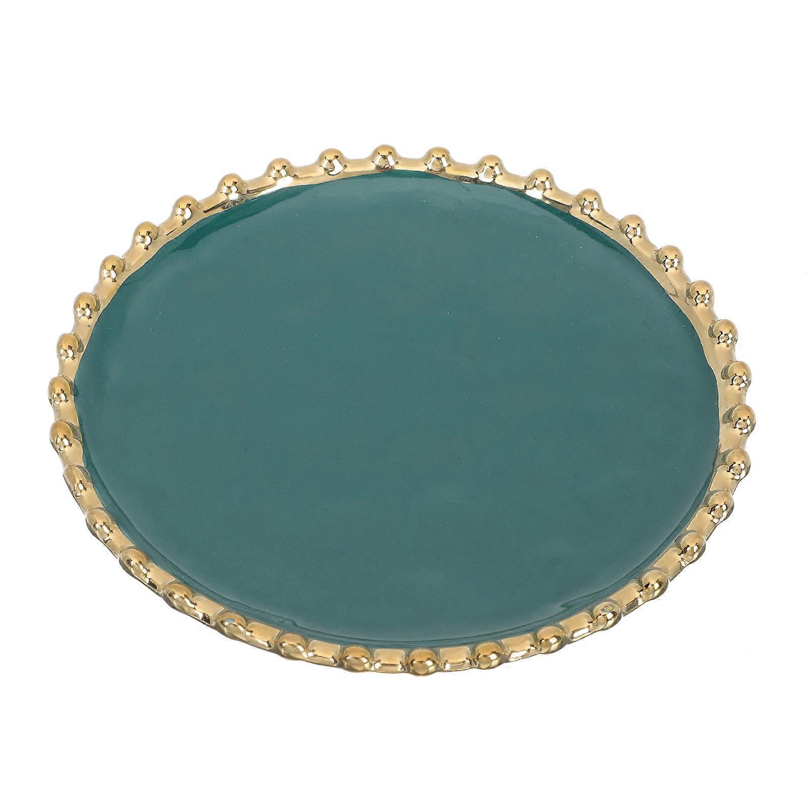 Ceramic Plate with Elegant Green Rim, Decorative Serving Dish for Breakfast, Desserts, and Home Parties