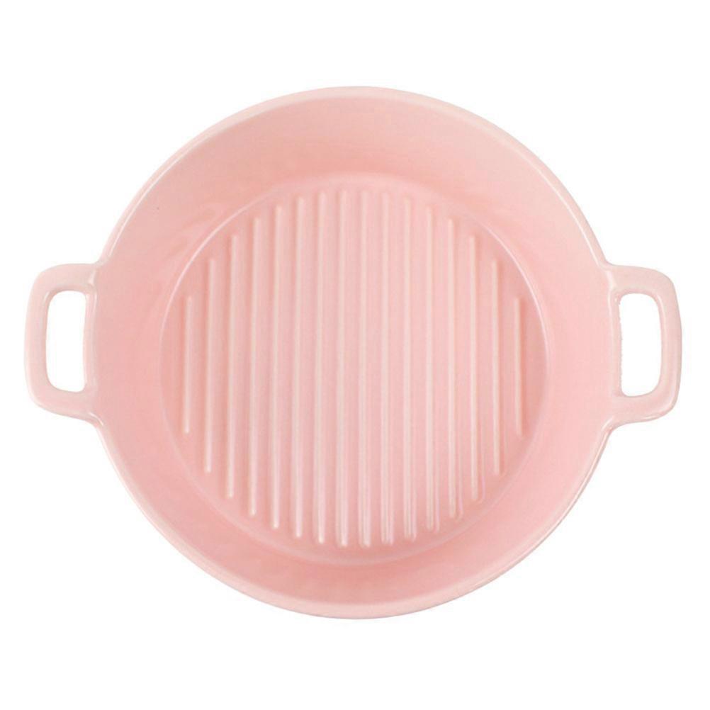 Ceramic Food Dish Dual-Ear Serving Plate for Kitchen 1Pcs Pink Dish