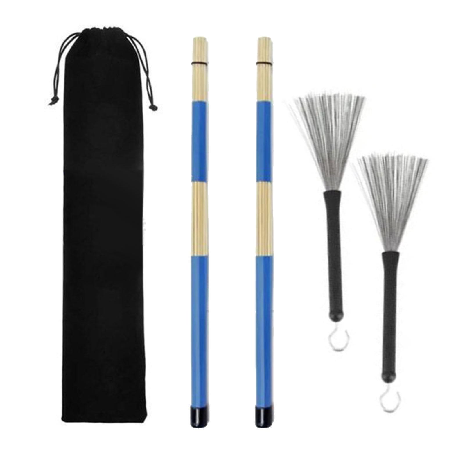 Drum Brush Kit Metal Stainless Steel Bamboo Brushes Set Tool Accessories with Velvet Bag