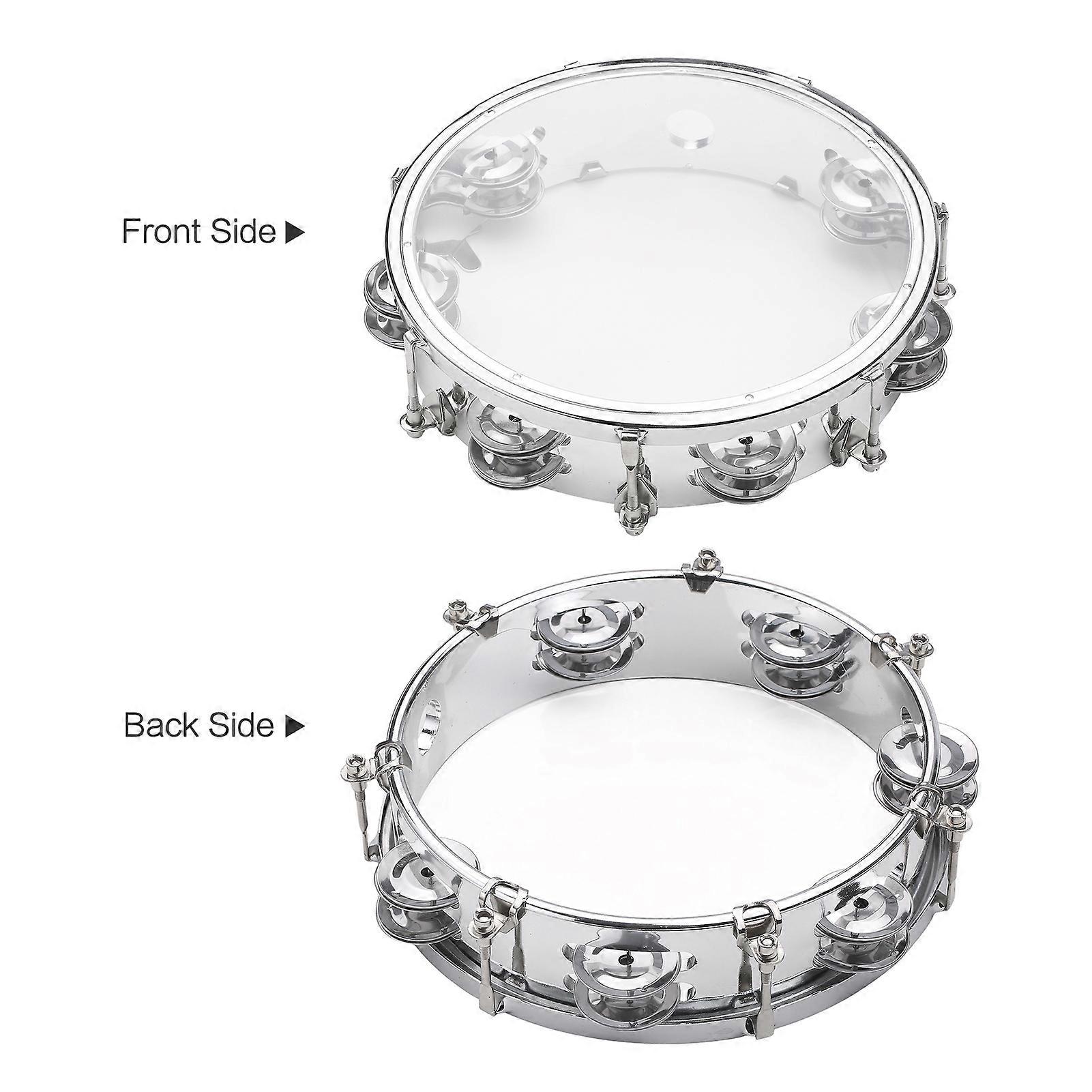 8-inch Tambourine Handbell Hand Drum with Double Row Jingles Musical Percussion Instrument