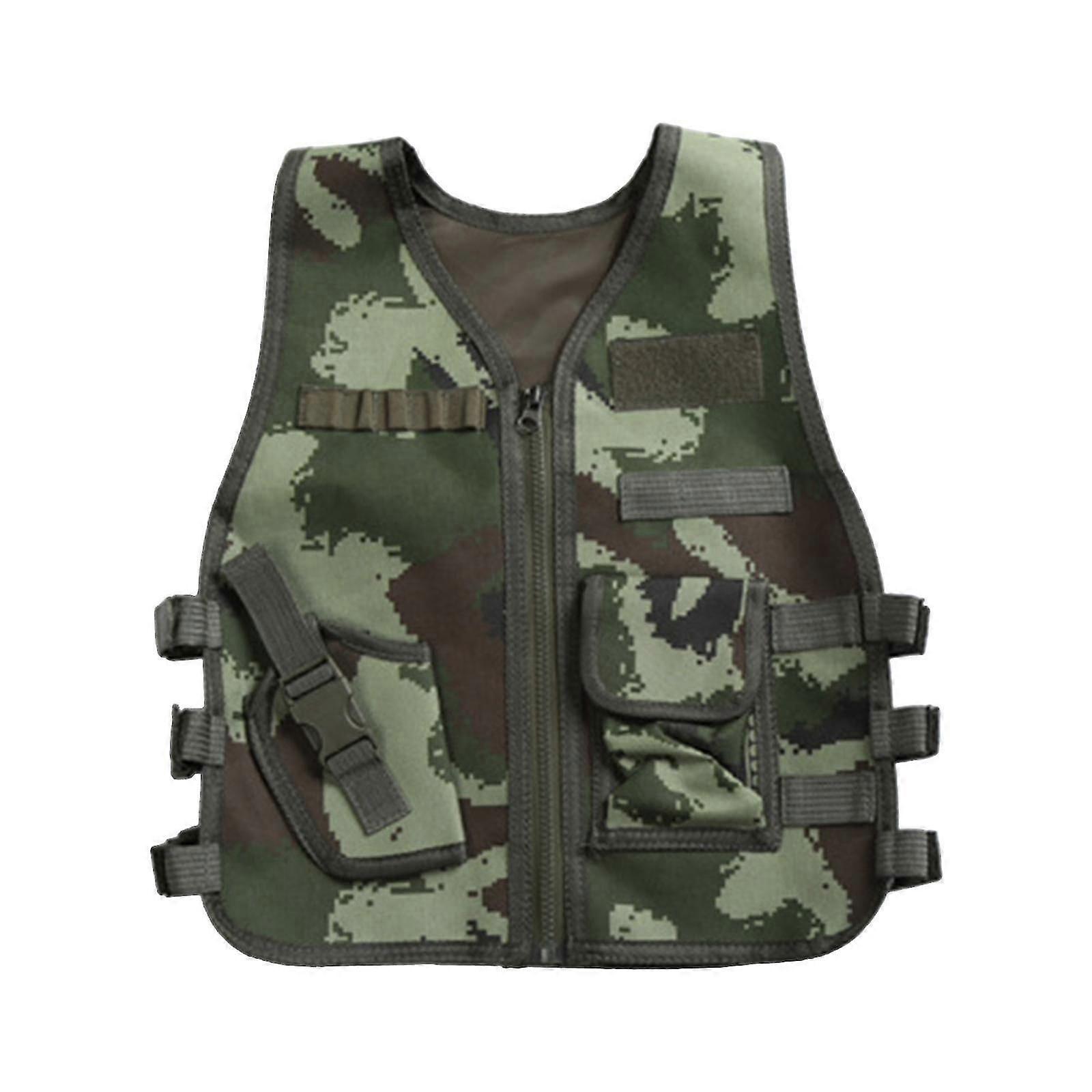 Kid's Tactical Vest Training Waistcoat Assault Gear Plate Carrier Green 45cm