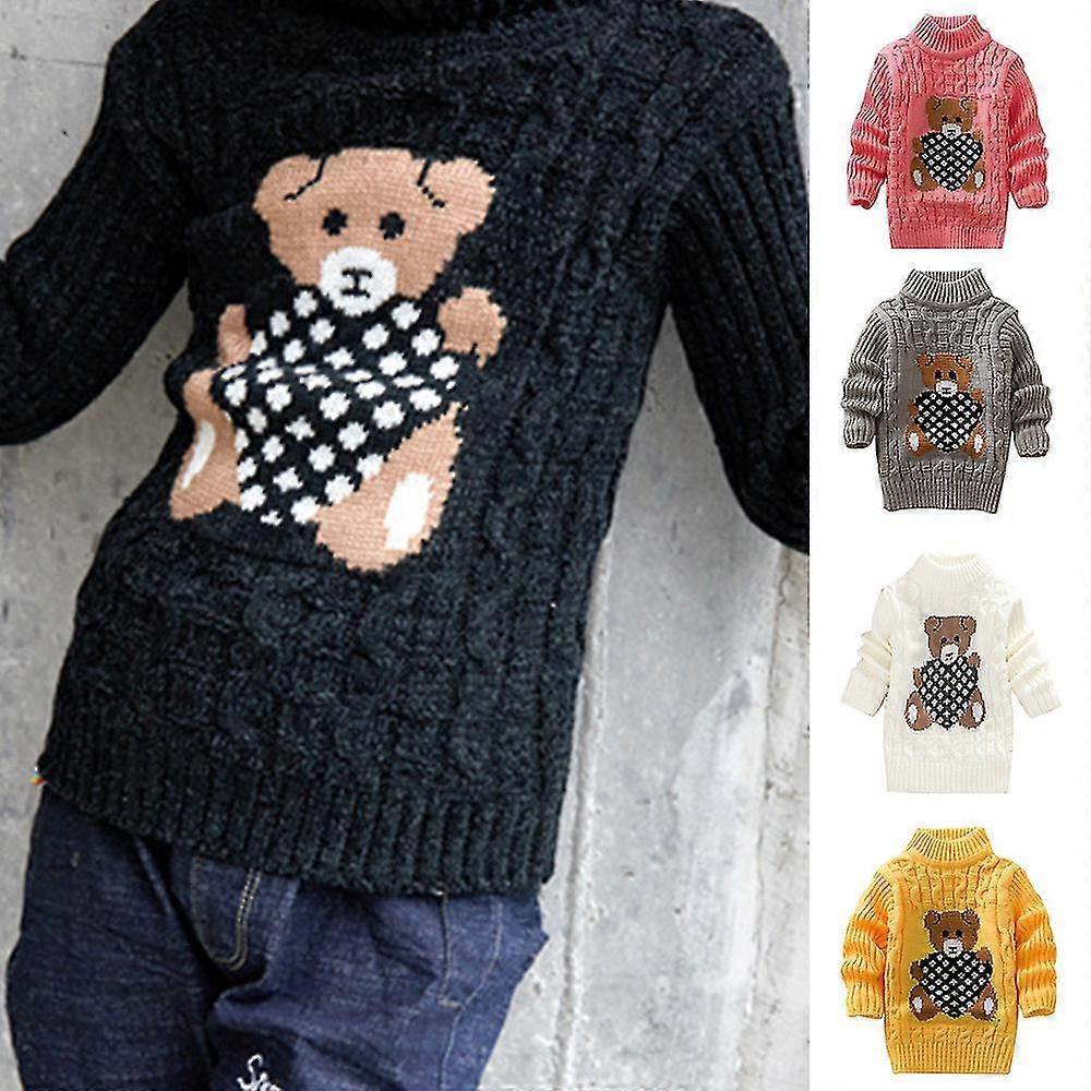 Kid's Winter Sweater For Boy Girl Cartoon Bear Knitted Low Collar Pullover Tops