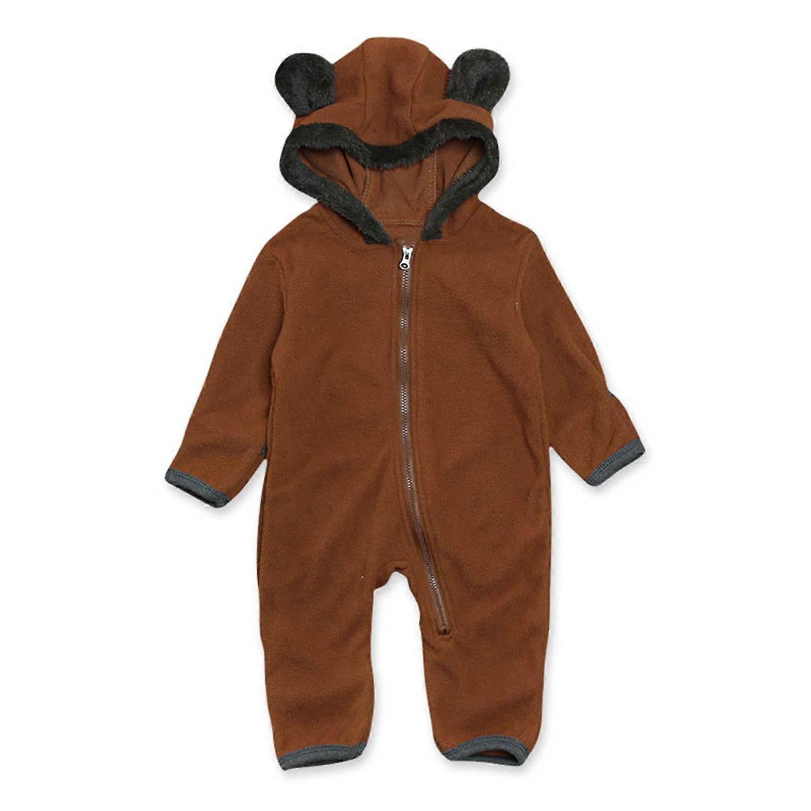 Toddler Baby Boys Girl Winter Bear Zipper Hooded One-piece Romper Set