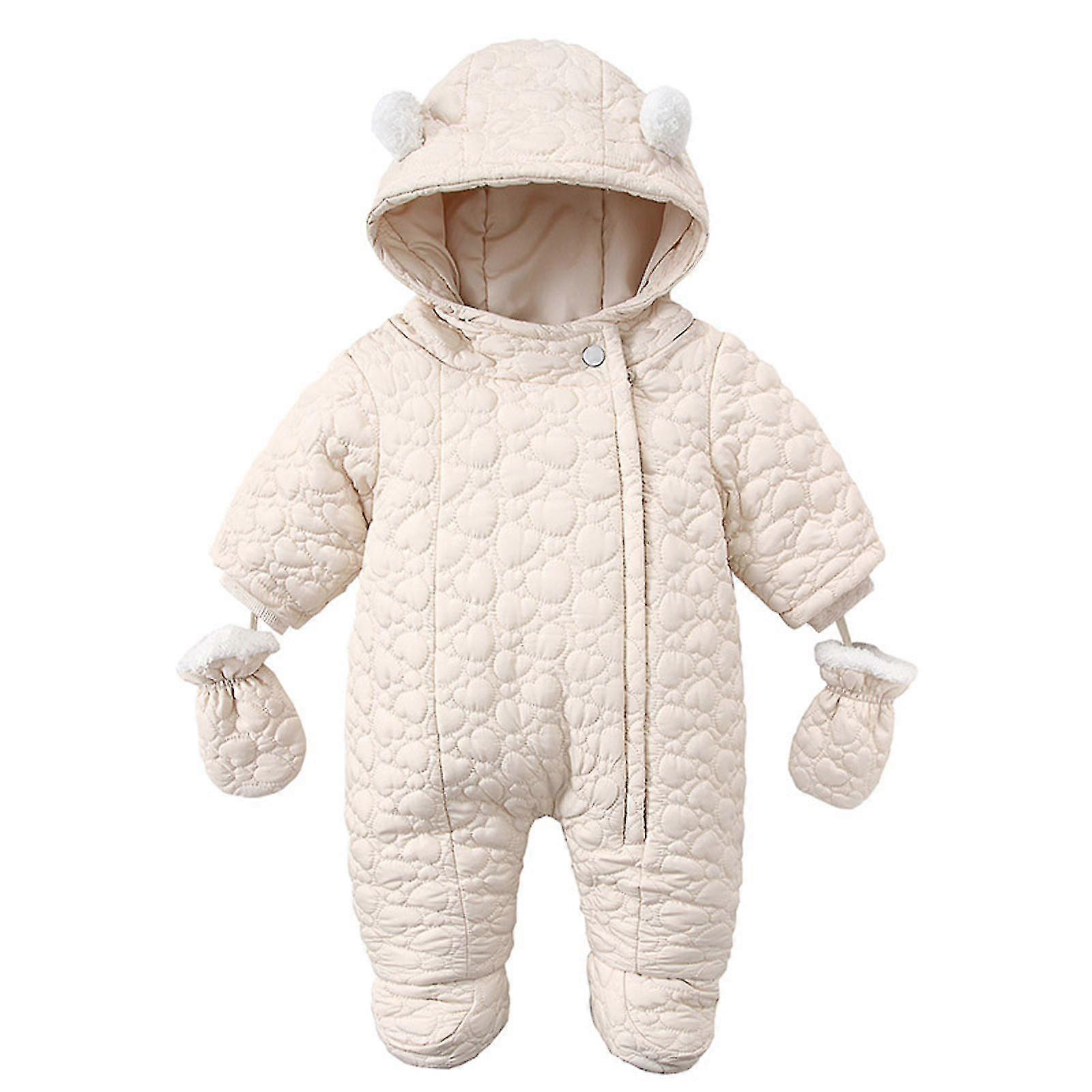 Toddler Baby Snowsuit Footie Rompers Long Sleeve Winter Hooded Jumpsuit For Newborn Thick Outerwear