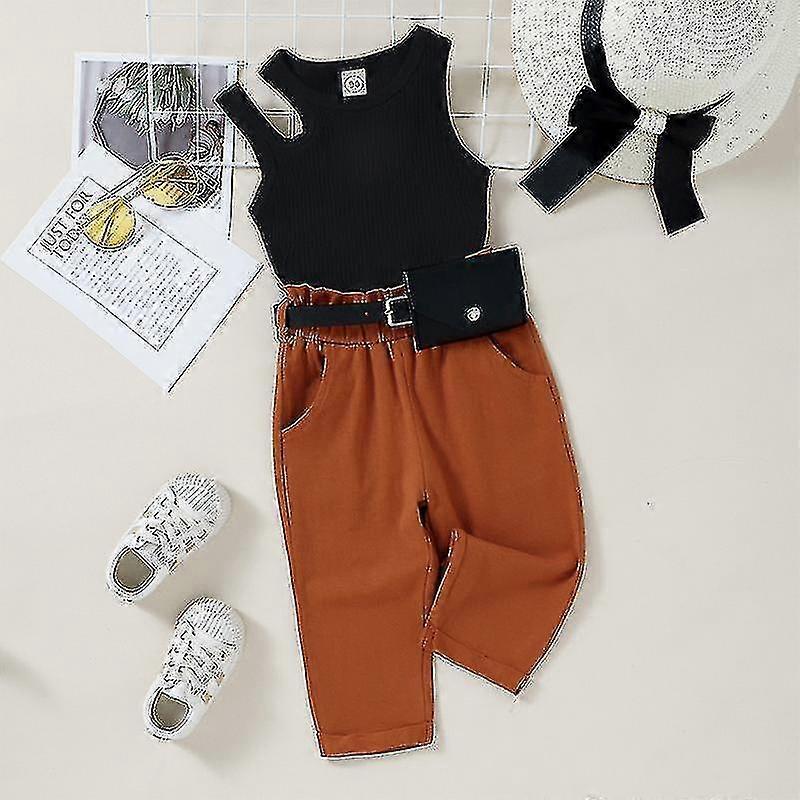 Toddler Sleeveless Summer Outfits Suits Clothes Tank Sets Crew Neck Vest 3 Pieces Outfit