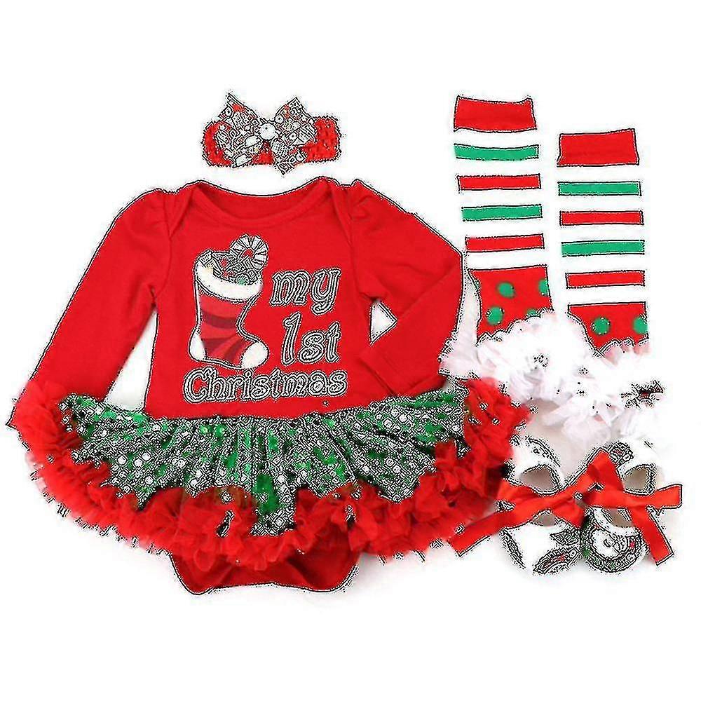 Toddler Baby Girls My 1st First Christmas Tutu Dress 4pcs Outfits Set Xmas Gifts