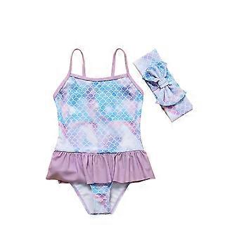 Toddler Girls One-piece Bikini Swimsuit Swimwear Summer Beach Bow Headband Set Bathing Suit