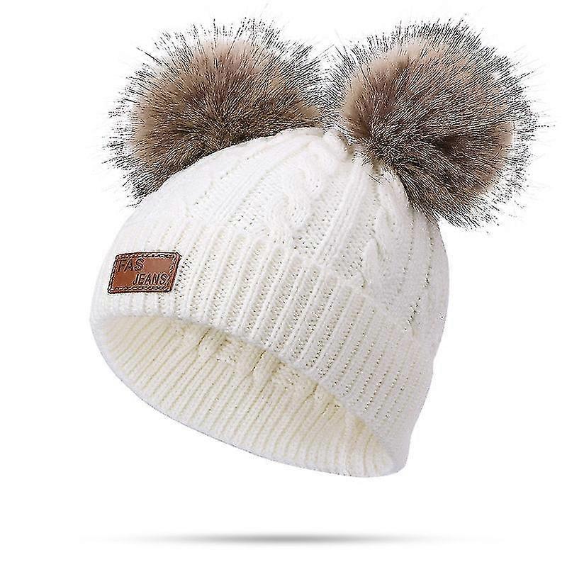 Toddler Woolen Hat Winter Twist Double Pom Pom Knitted Beanies Cap Pink