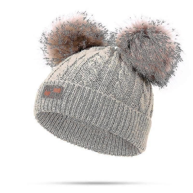 Toddler Woolen Hat Winter Twist Double Pom Pom Knitted Beanies Cap Pink