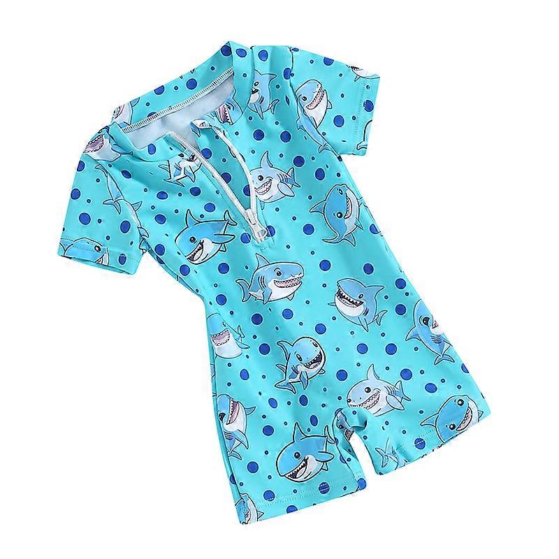 Toddler Boys Sun Protection Swimsuit One-piece Zipper Short Sleeve Shark Print Children's Swimsuit Baby Swimwear
