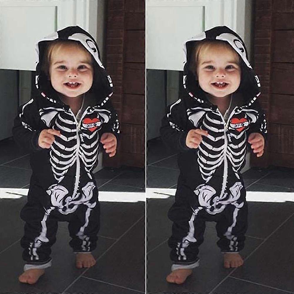 Baby Toddler Skeleton Printed Romper Playsuit Halloween Party Cosplay Costume Hoodies Hooded Jumpsuit
