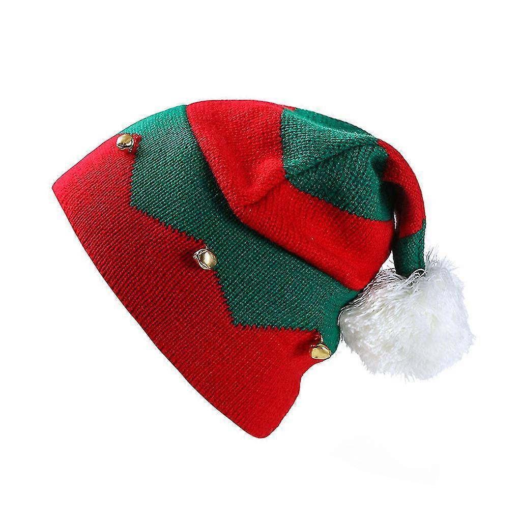 Toddler Kids Christmas Party Knitted Elf Hat With Small Bells Stripes Santa Cap