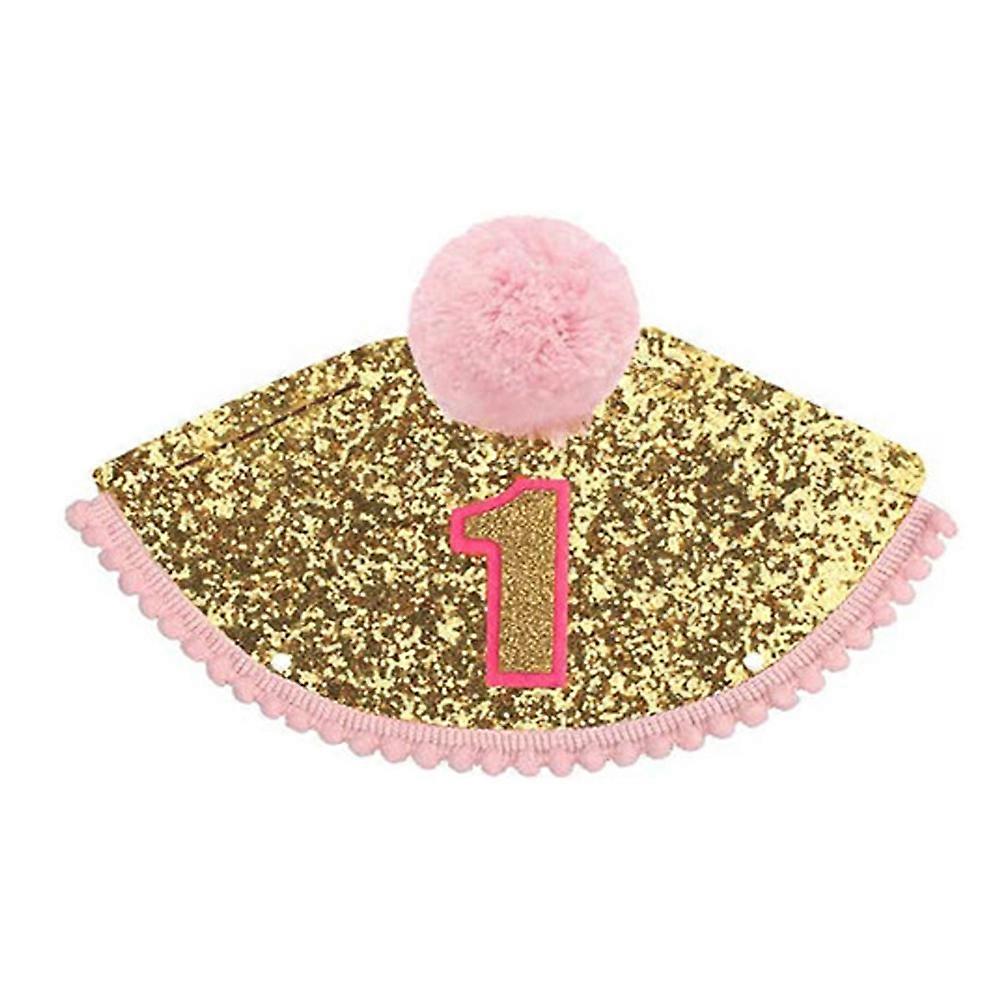 Baby Birthday Crown Birthday Cone Hat for Child Golden Fabric Photo Prop 1Pack