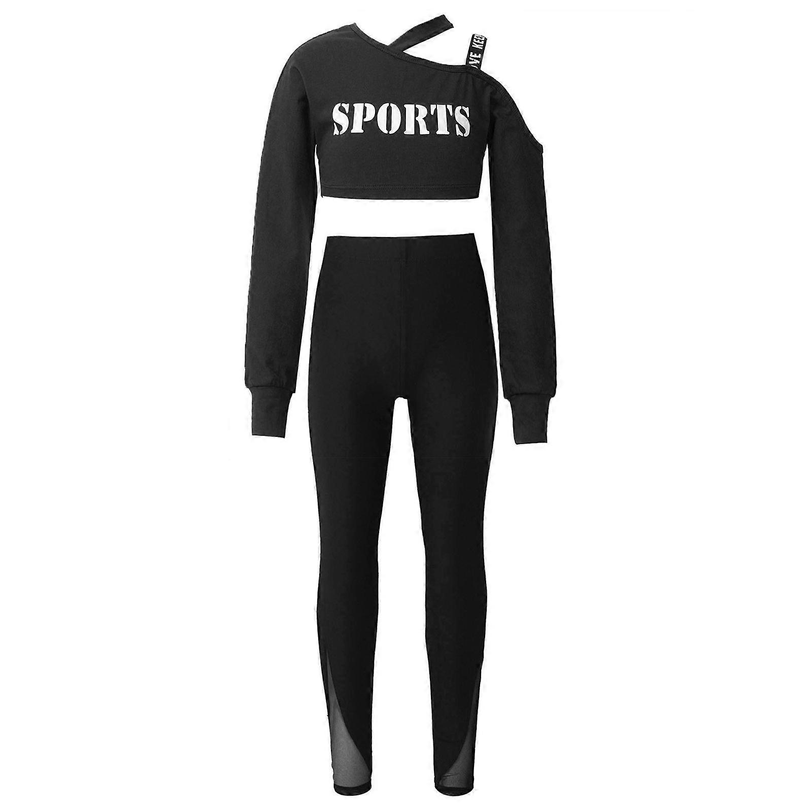 Kid Girl Clothes Set One Shoulder Long Sleeve Letter Print Sport Tanks Crop Top with Legging Workout Dancewear Gymnastics Outfit