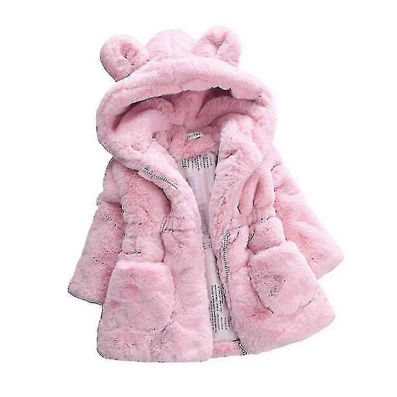Kid Girl Fluffy Faux Fur Hooded Coat Fleece Jacket Winter Warm Outwear