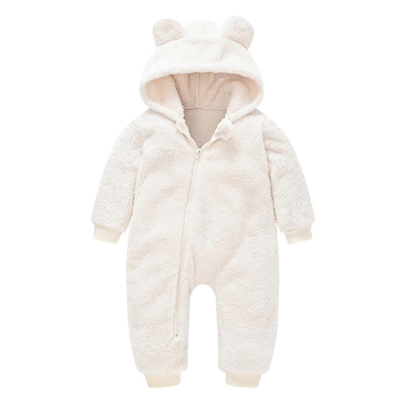 Kid's Hooded Plush Jumpsuit With Cute Bear Ears Hood Zipper Onesie Pajamas