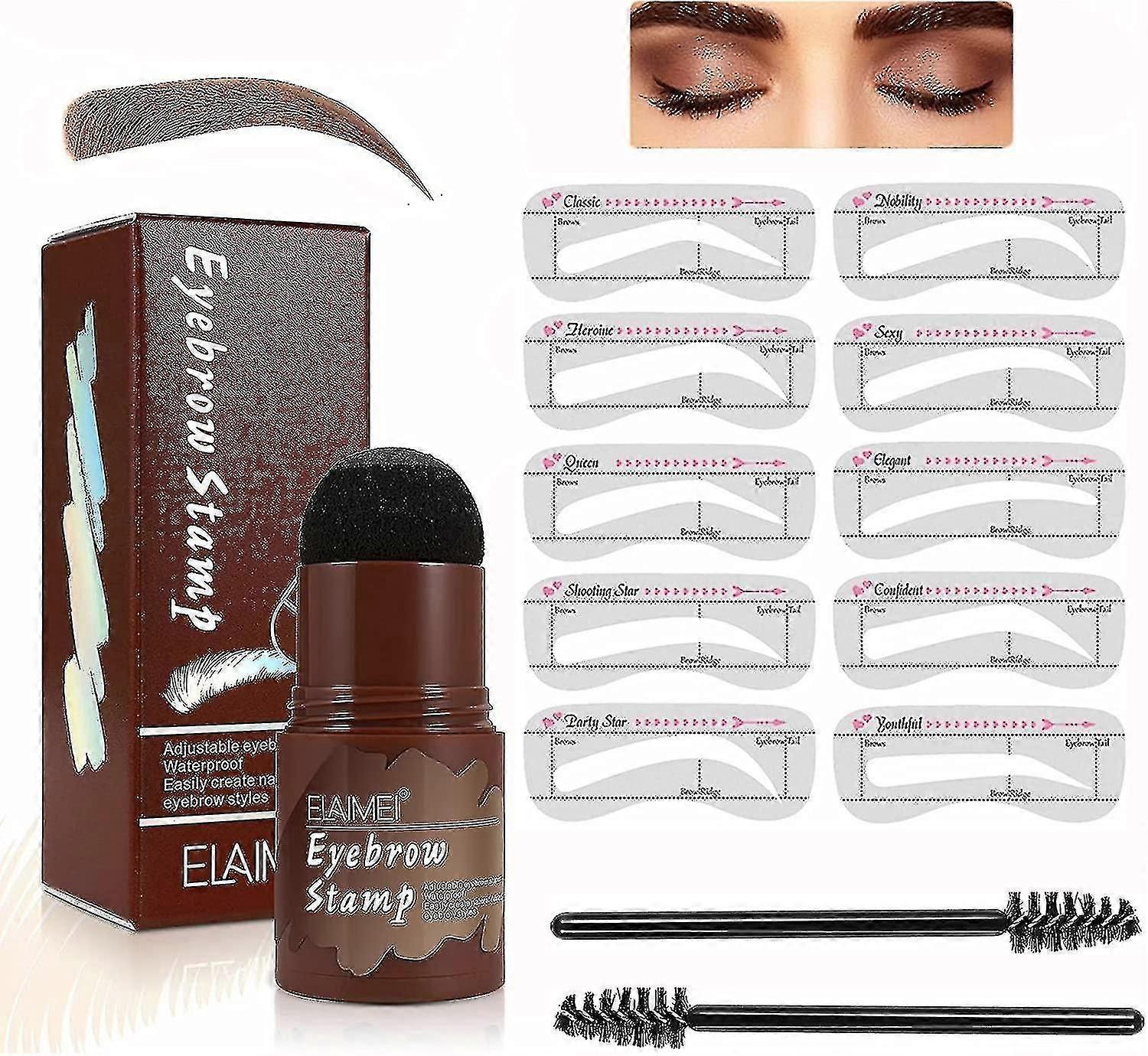 Eyebrow Stamp Stencil Kit, Waterproof Eyebrow Stamper With 2 Eyebrow Brushes 10 Reusable Eyebrow Stencils