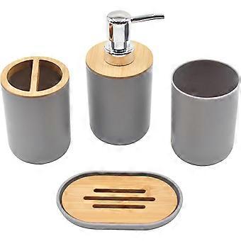 Bathroom Accessories Set - 4 Pieces - Durable - With Soap Dispenser, Toothbrush Holder, Tumbler, Soap Dish (gray)