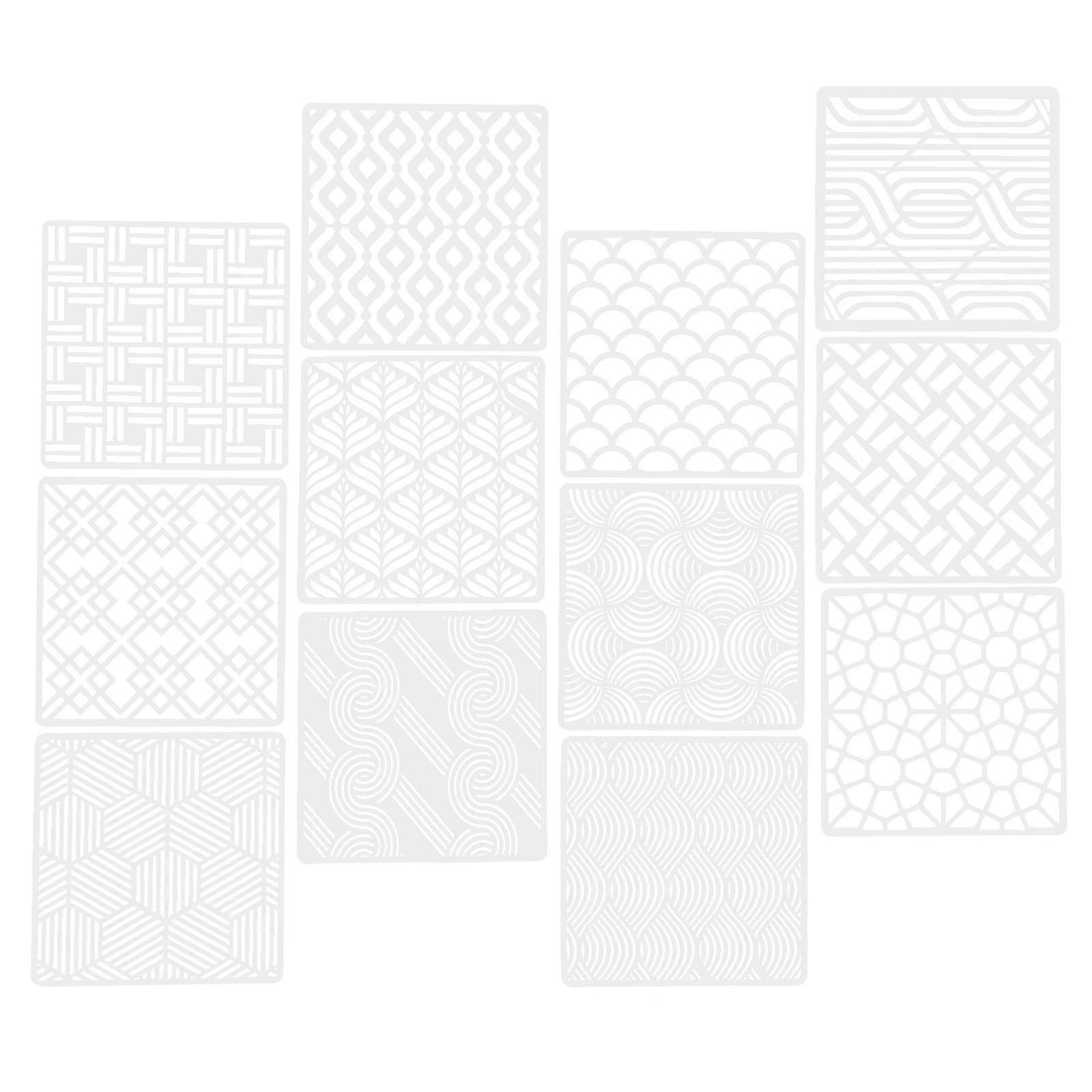 Stenciling Kit 12Pcs Hollow Design Painting Accessory For Artists 15X15Cm White Flexible