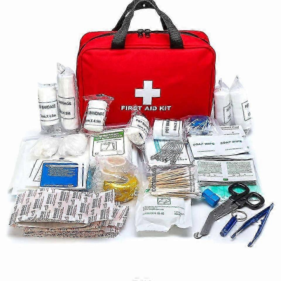 First Aid Kit For Home, Car, Office, School, Camping, Hiking - Red, Portable, Compact, Emergency Supplies