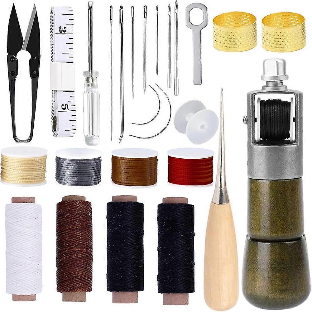 Leather Sewing Kit,Straight Bent Needles Rolls Waxed Threads Small Screwdriver Yarn ScissorsNeedle