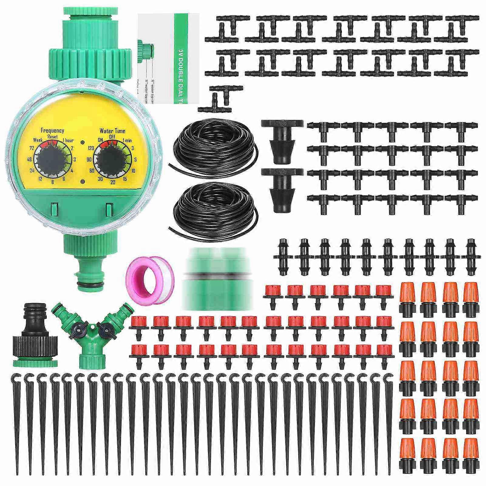 Automatic Drip Irrigation Kit with Timer, 30 Meter Tubing, Plant Watering System for Garden Lawn Patio, DIY Adjustable Nozzles and Misters