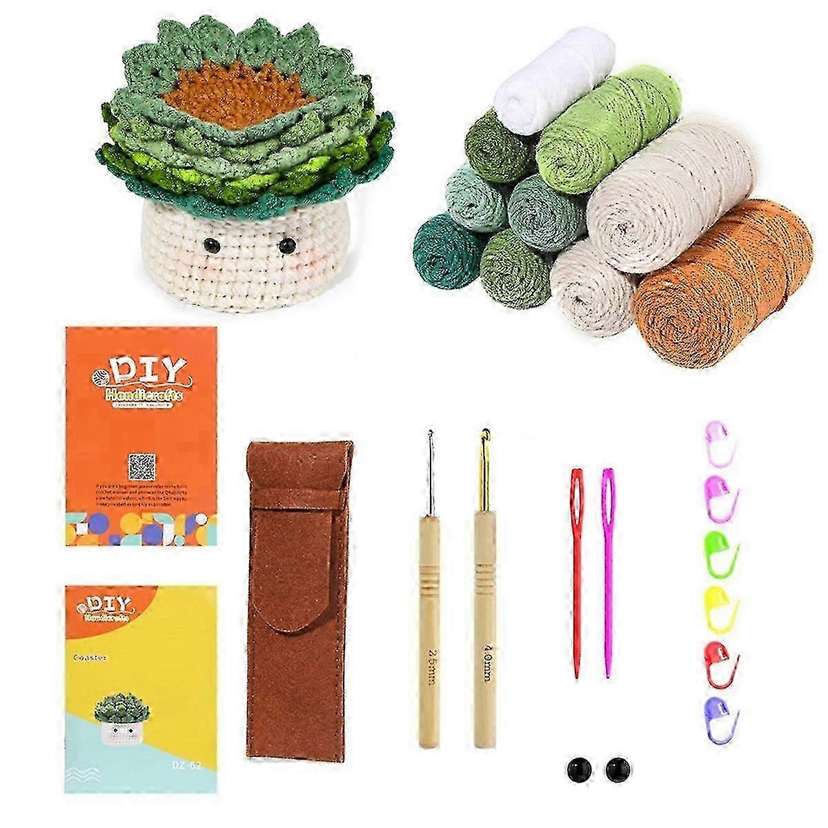 Crochet Kit for Beginners - 6Pcs Coasters in a Plant Pot Crochet Start Kit,Beginner Crochet Kit with