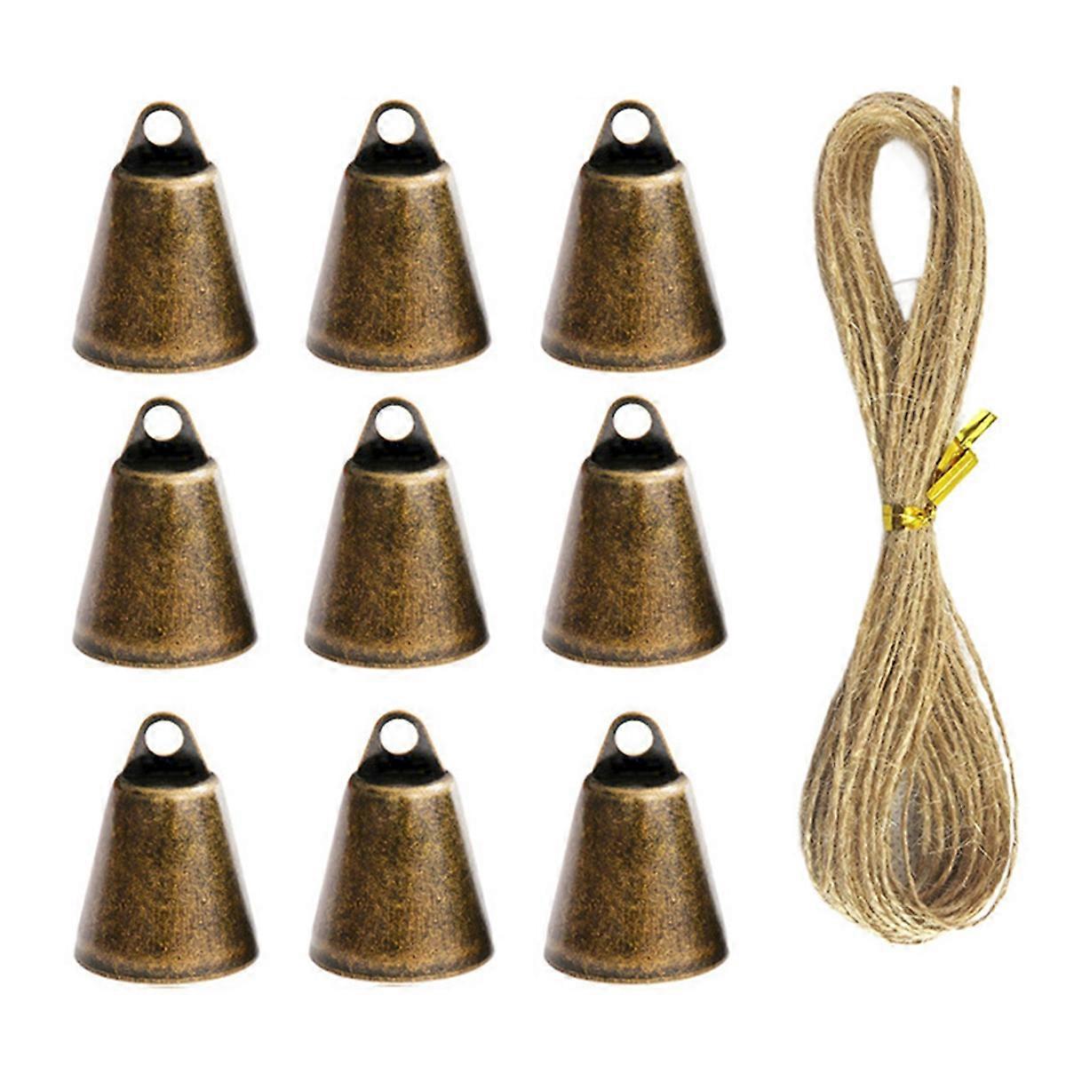 Vintage Bronze Jingle Bells 9Pcs Set with Rope Ideal for Crafts Christmas Decor