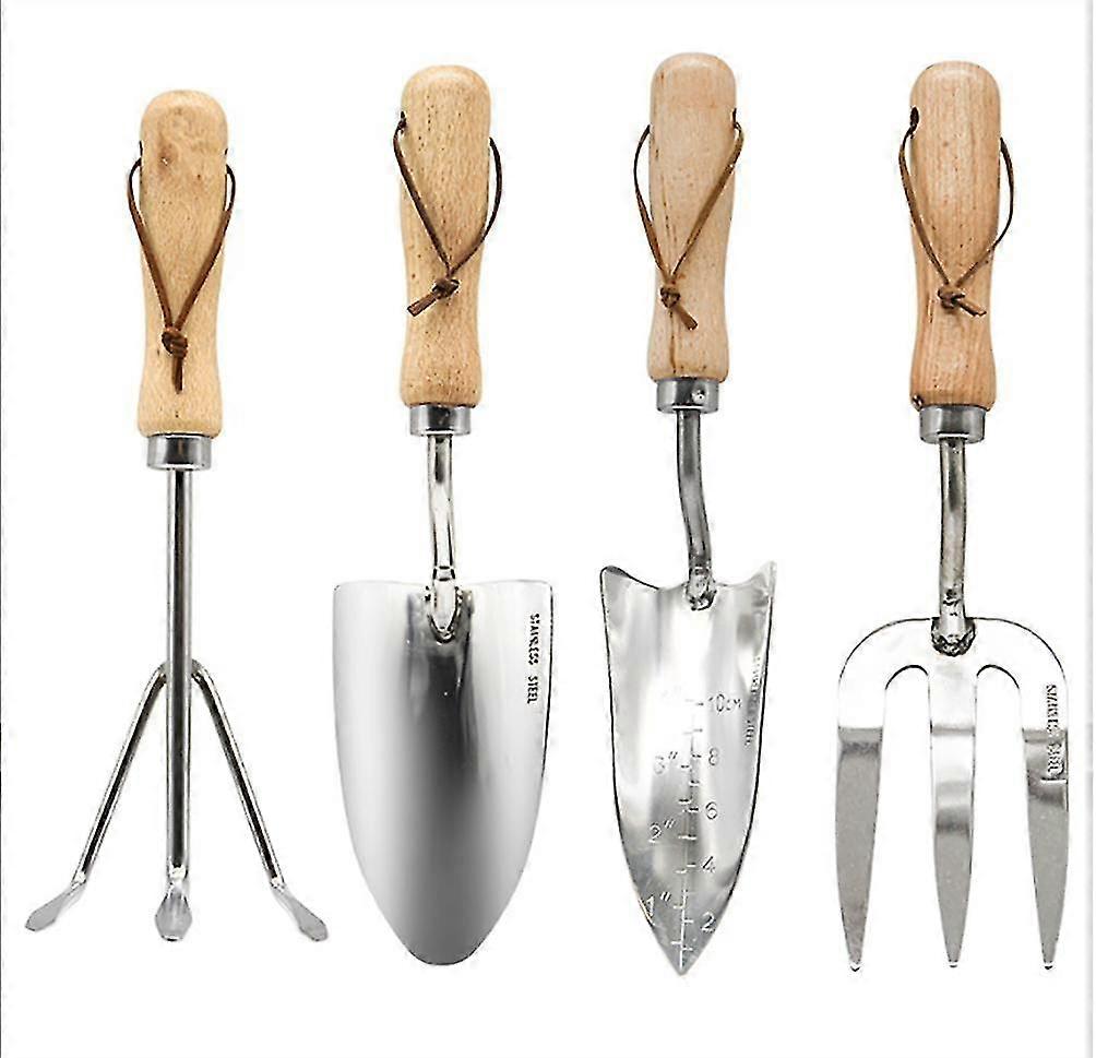 Garden tool set, 4-piece garden tool set, small garden shovel, wooden handle, handheld garden shovel, potted flowers, approx. 30 cm