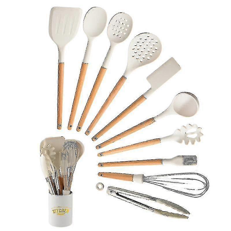 Silicone kitchenware set with wooden handles, 10 pieces, heat-resistant, easy to clean and can be disinfected
