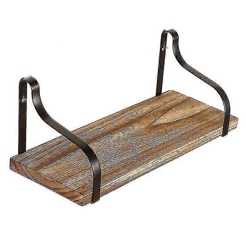 Wall Shelves Set Of Wood And Iron Shelves Maximum Load 20 Kg, Black Carbonized