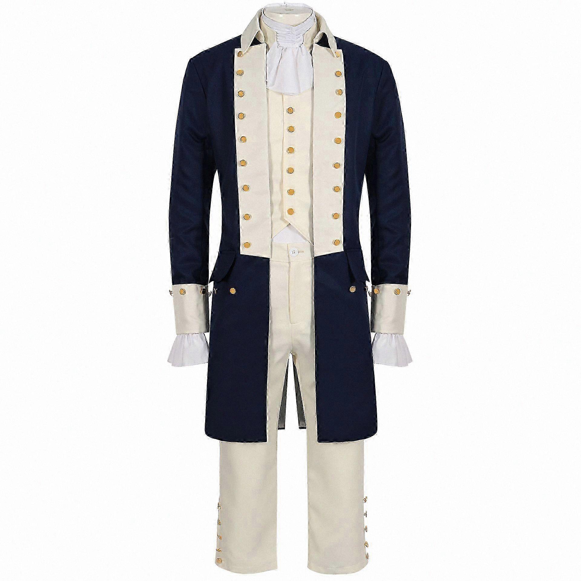 Men's 18th Century Historical Costume Set with Ruffled Shirt, Vest and Tailcoat (S-2XL)