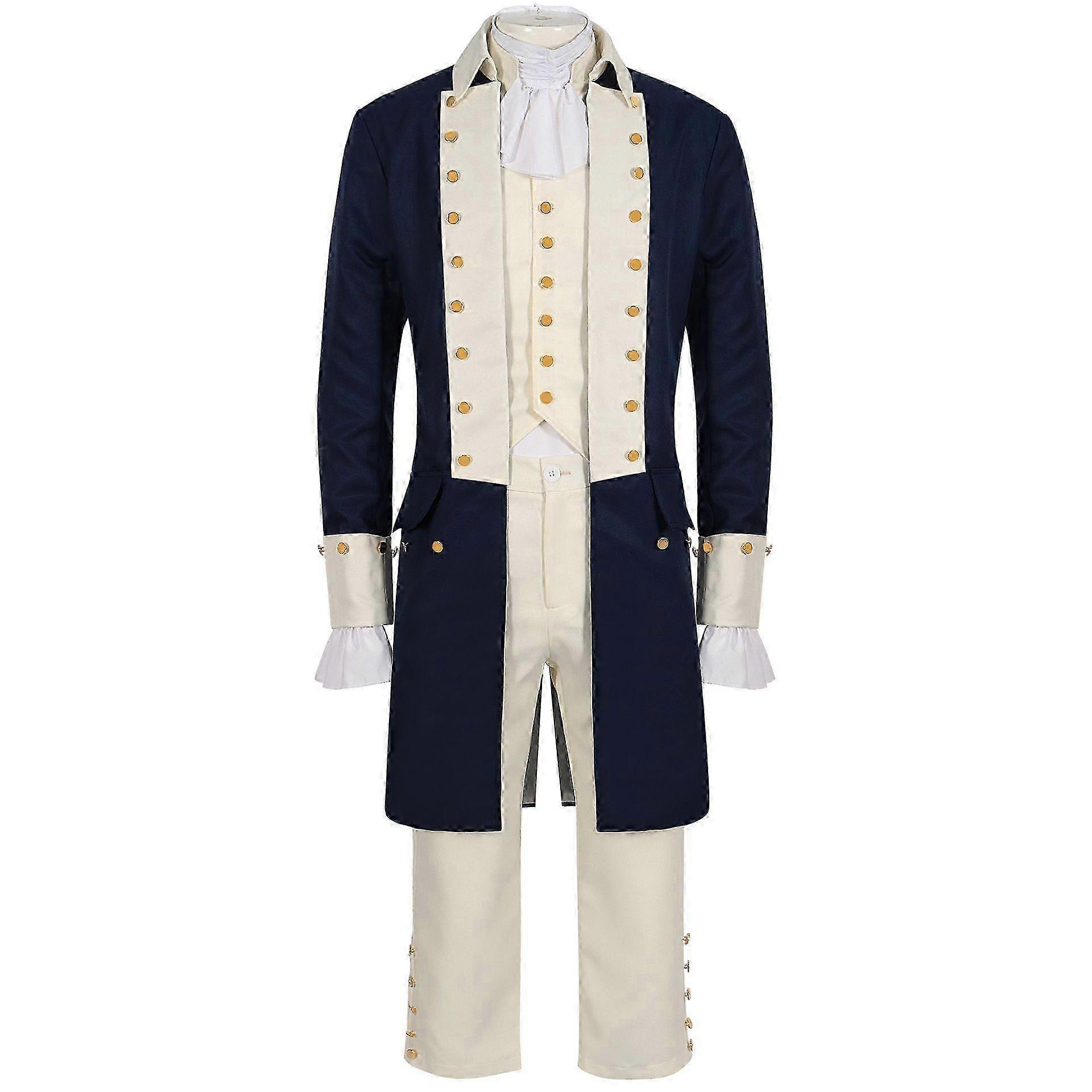 Deluxe 18th Century Hamilton Costume Set for Men - Ruffled Shirt, Vest & Tailcoat (Sizes S-2XL)