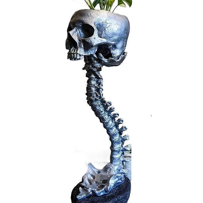 Resin Skull Planter & Spine Stand Set, Polyresin Skulls Pot, Silver