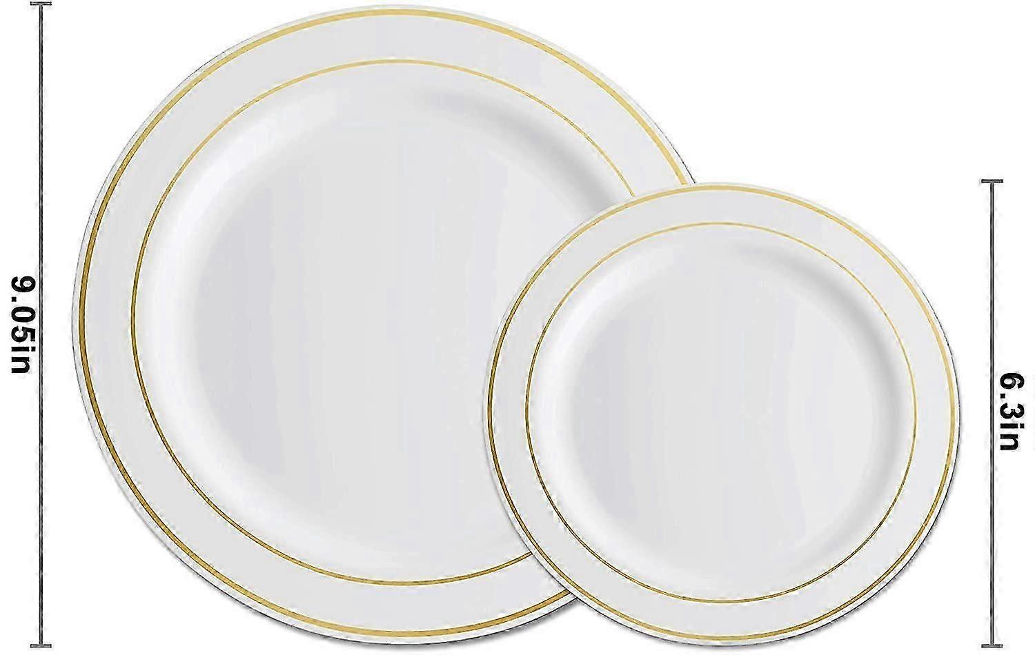 50-Piece Plastic Dinner Plate Set with Silver and Gold Rims, Includes 6-Inch and 9-Inch Plates for UK Parties