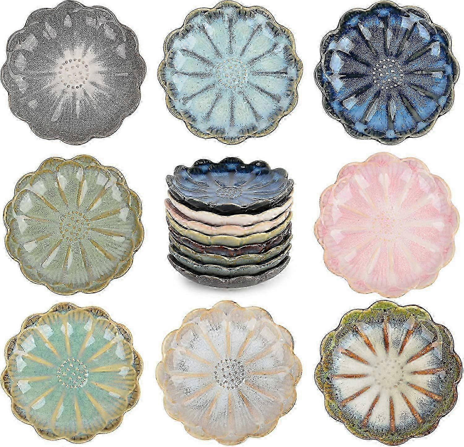 Dipping Bowl Set of 8, Ceramic Soy Sauce Dishes, 3 oz Dipping Sauce Cups, chrysanthemum Round Small Side Dish Bowls for Dipping Sushi Tomato Soy Sauce