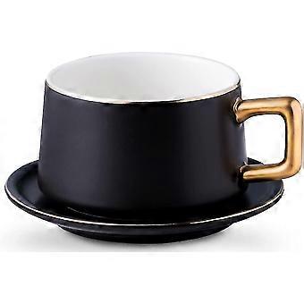 طقم أكواب القهوة والصحن الأسود 9 أونصات طقم كوب شاي من السيراميك مطفي أسود غير لامع من البورسلين