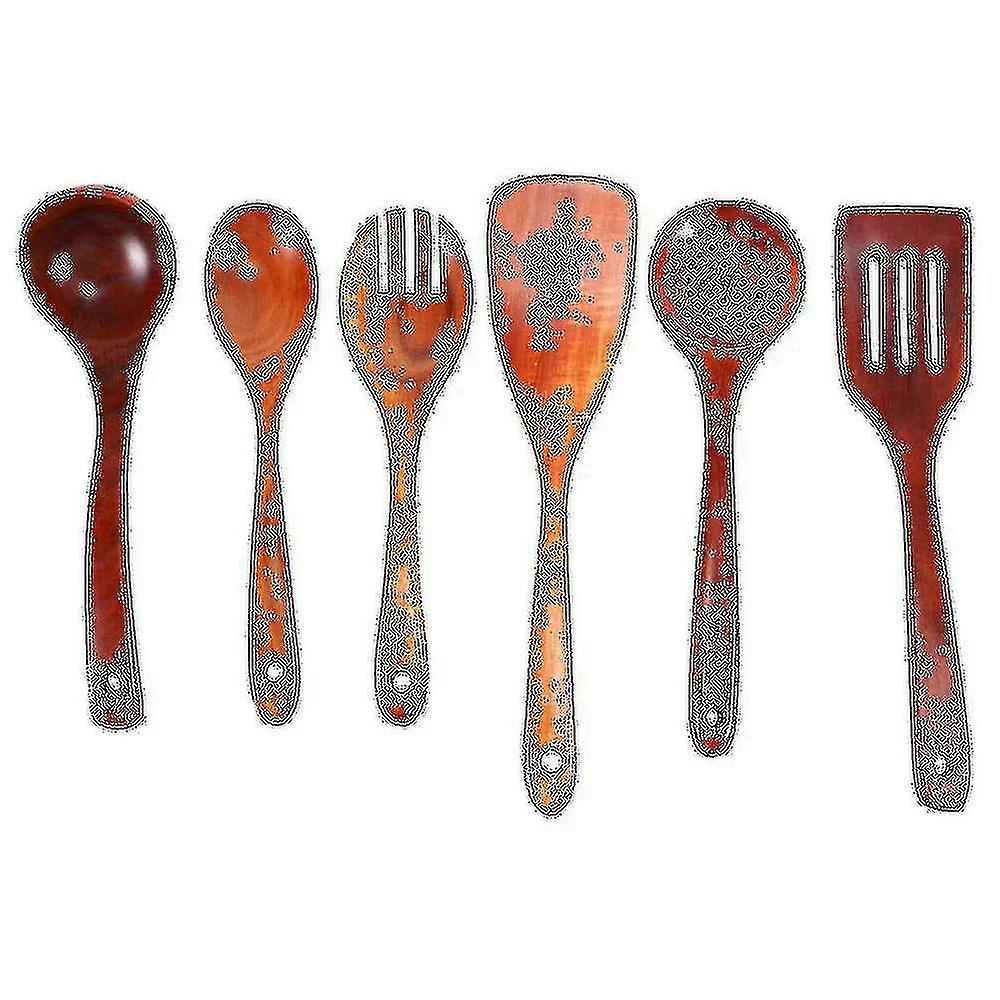 Wooden Utensils Set Of 6, Large Kitchen Cooking Utensil For Non Stick Cookware, Natural Teak Wood S