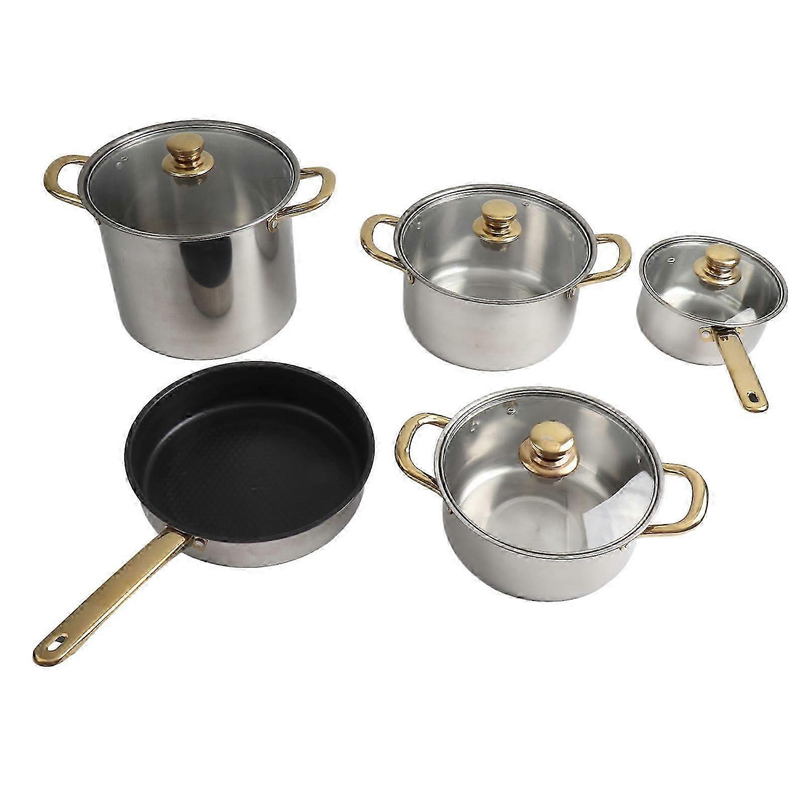 Stainless Steel Pots and Pans Set, Ergonomic Gold Handle, Multifunctional Cookware Set, Saucepans with Glass Lids for Kitchen