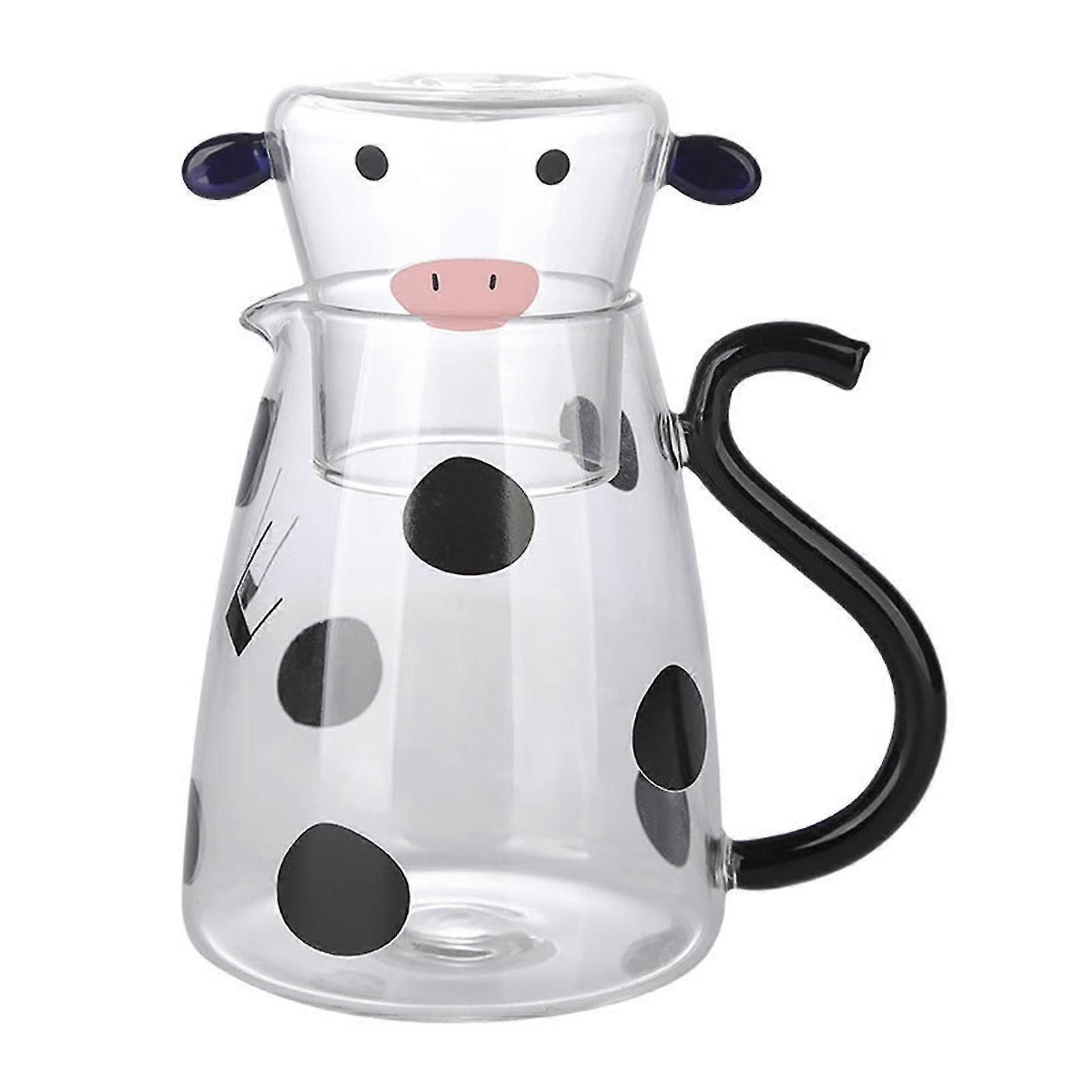 Cow Design Carafe Set with Heat-Resistant Cups for Storing Juice Milk and Coffee