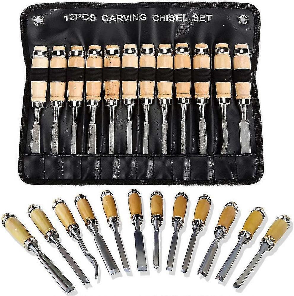 Wuzhou-professional Wood Carving Chisel Set - 12 Piece Sharp Woodworking Tools W/carrying Case - Great For Beginners