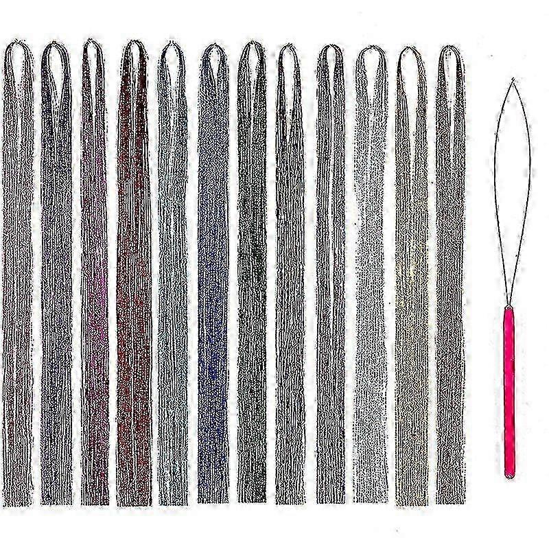 Hair Tinsel Kit with 47-inch Strands - 12 Colors Fairy Hair Extensions with Tool for Sparkling Glitter & Shiny Silk Look